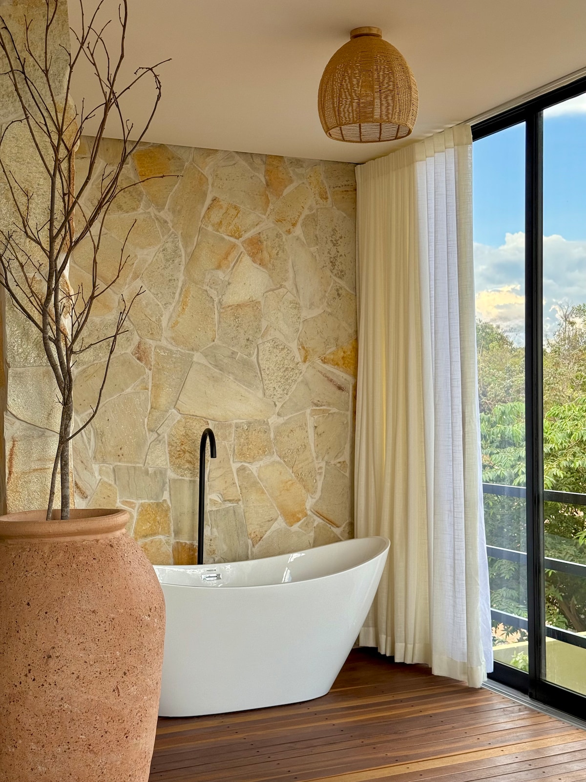 O Chalé Ayrá é um refúgio arejado, criado para quem busca pausa, inspiração e um respiro na natureza. Uma tiny house envolta pela força do cerrado, onde o tempo desacelera e os sentidos despertam. O Ayrá oferece uma experiência pensada nos detalhes: lençóis de 1000 fios, ar-condicionado, banheira de imersão, rede, fogueira, forno, bar completo. SPA, sauna e a piscina natural ozonizada — acessos compartilhados dentro da Villa Aruanda — completam o cuidado com o corpo e a mente.