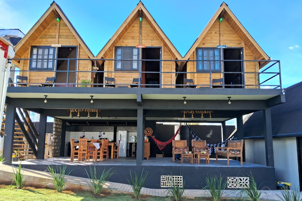 Chalet elevado tipo palafita inspirado nas construções ribeirinhas amazônicas e sudeste asiático, cercado de muita área verde, reserva ambiental e excelente vista do Parque Nacional. Ampla área privativa para relaxar, com redes e cozinha aberta completa. Casas em técnicas ecológicas, reuso de materiais e bioconstrução. Processos ecológicos de saneamento. Separação adequada dos resíduos sólidos e 100% de compostagem dos orgânicos. Hortaliças e frutas orgânicas disponíveis. Insta: casa_pantoja