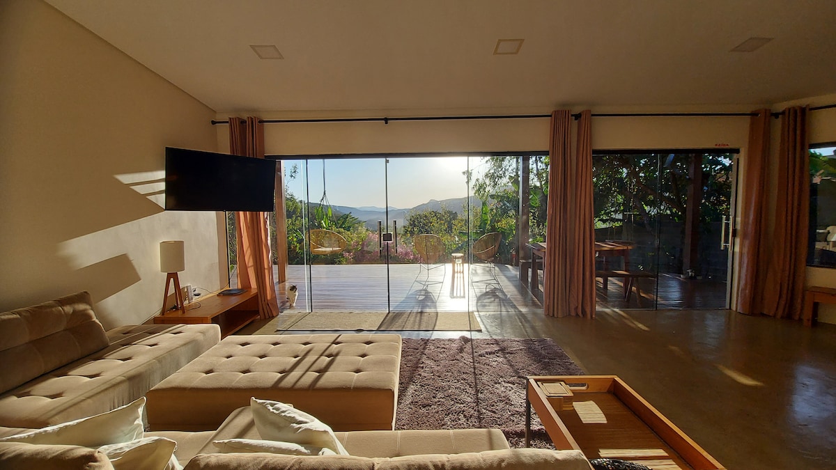 Bem vindos a nossa casa nas montanhas junto ao luxo da natureza, a magia da paisagem, o ar aconchegante a mata nativa tornam este local perfeito para descansar, contemplar a natureza e os pássaros que nos visitam. Bem iluminada e arejada, a casa tem um jardim de inverno que cria dois ambientes internos em conjunto com a natureza. Você vai chegar e sentir a paz e o silêncio que esse lugar proporciona. .600m da Avenida Principal de Alto Paraíso .Design diferenciado, planejada com Feng Shui