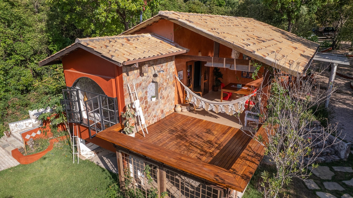 Welcome to your nature escape in the heart of Cerrado, a cozy solar-powered adobe lodge with access to exclusive hiking trails and waterfalls. If you love quiet mornings, endless skies, star-filled nights, and the presence of real nature, this is your place. You’ll enjoy: - a peaceful retreat away from city noise - trails, stunning views, and nature all around - comfortable spaces designed for slow mornings and deep rest - a calm environment perfect for couples, small groups, or solo travelers