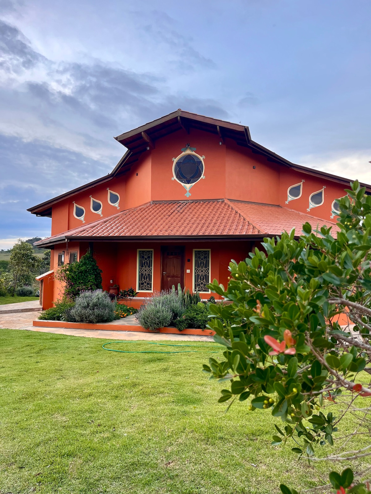 Chalé estilo suíço em design biofílico, formas orgânicas construído com muitas pedras, madeira e espaços amplos e aconchegantes. Espaço totalmente térreo, seguro e cercado, rodeado por vegetação externa e internamente. Cozinha totalmente equipada. Garagem coberta para 1 carro de até 5 metros. Área de lazer externa privativa conta com pergolado com redes de descanso e jacuzzi equipada com jatos de hidromassagem, aquecimento até 40 graus e cromoterapia. Sua casa fora de casa.