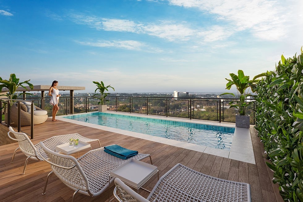 Disfrutá de una estadía única en este elegante departamento en Ciudad del Este. Cuenta con una habitación con cama matrimonial y un amplio sofá cama, ideal para hasta 4 personas. Con diseño contemporáneo y muebles a medida, ofrece confort y estilo, con parrilla y amplio balcón. El edificio es nuevo e incluye amenities como: piscina infinita en altura, coworking, gym, salón para niños, lavandería, hall, salones y seguridad 24h. Ubicado en zona estratégica, ideal para trabajo o descanso.