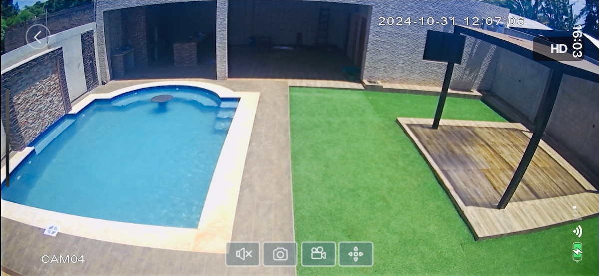 新房源带泳池和烧烤的五人房。