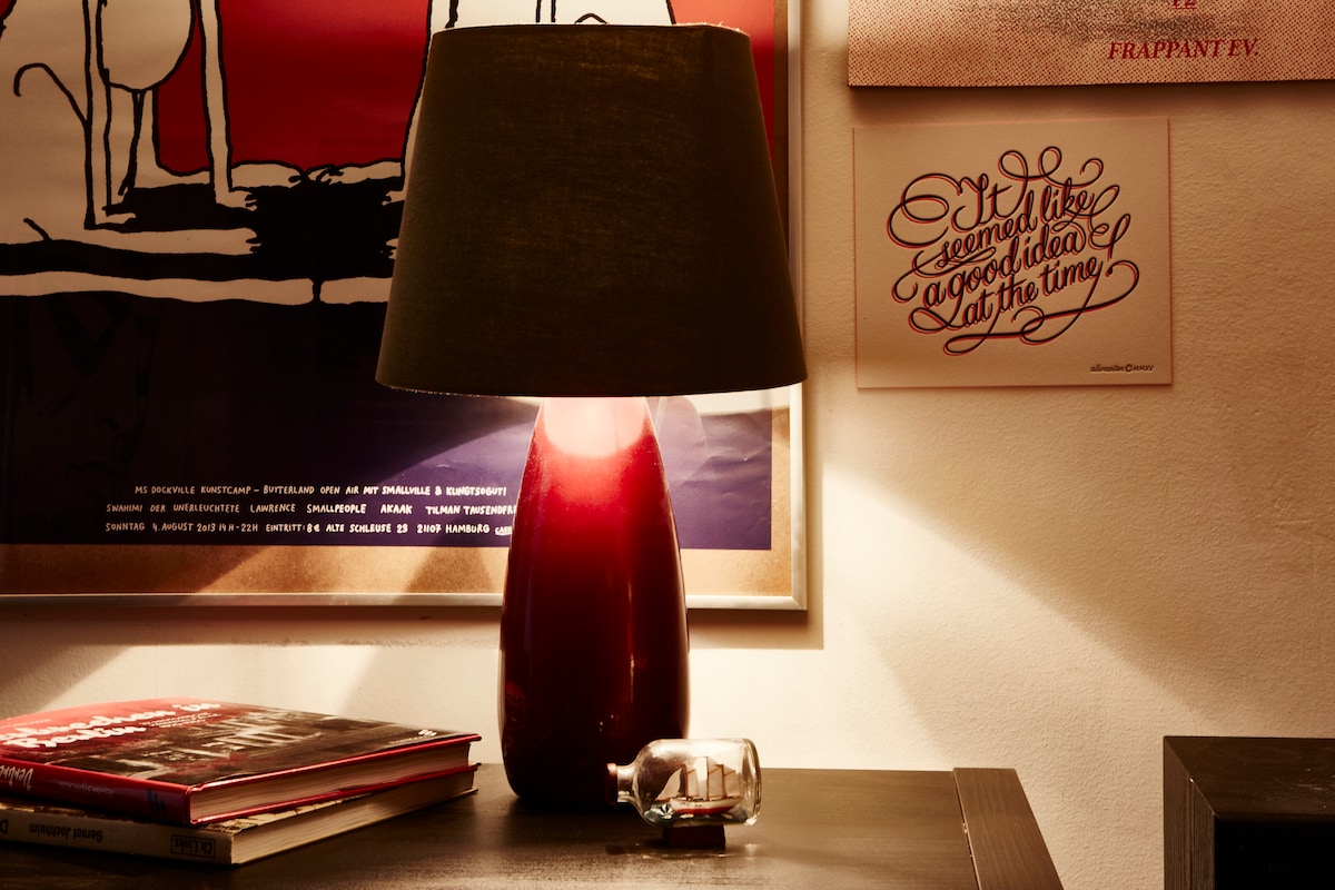Welcome to our top-notch 2-bedroom serviced apartment in Hamburg-Ottensen, hosted by the legendary Boogie Park Studio - Udo Lindenberg's second home! Accommodating 4 guests, it's just a 10-minute walk to the harbor, train station, Elbe beach, and even the Reeperbahn. Ottensen is one of Hamburg's most beautiful neighborhoods, brimming with lively bars, shops, and a twice-weekly market. Renovated in 2024 we usually use it as artist residence for the studio. From time to time some slots are free.