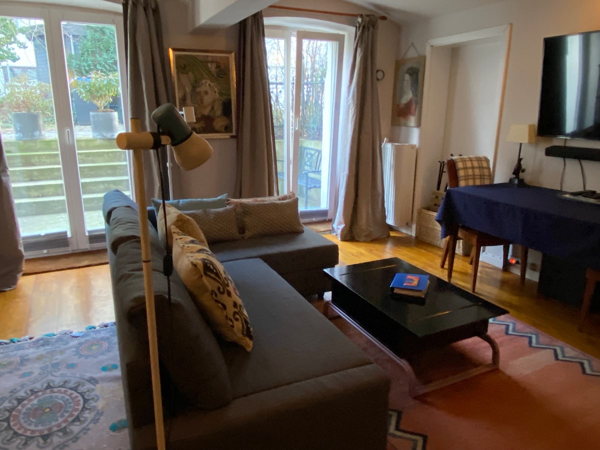 Cozy Souterrain apartment (60 m2) in the heart of Hamburg. Quiet, residential location, a small park across the street. Private garage rental 15€/day or neighborhood street parking with Visitor's Pass 4€/day. Hamburg Harbor, Fish Market, Reeperbahn, Elbe River, trendy Ottensen and Schanze neighborhoods close by. Königstrasse subway station (5 min. walk), the Altona Train Station (10 min. walk) and the Altona Central Bus Station (10 min. walk) all Hamburg destinations are easily reached.