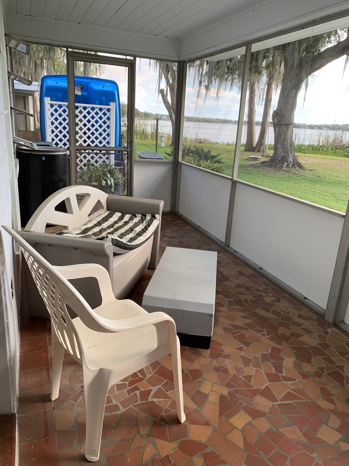 Located in Eustis Florida. Next to the Lake Eustis Sailing Club, Small Lakefront house with 1 bedroom, 1 bathroom, Living Room, Full Kitchen, Small desk for working, Screened Porch with beautiful lake views. Close to restaurants, grocery stores, and parks. 10 minutes from Mount Dora, one hour from both the East and West coasts. One hour from Disney World and most attractions. 4.2 Miles or 10 minutes from Advent Health Waterman NOTE: NO ANIMALS OF ANY KIND ARE ALLOWED DUE TO ALLERGIES!