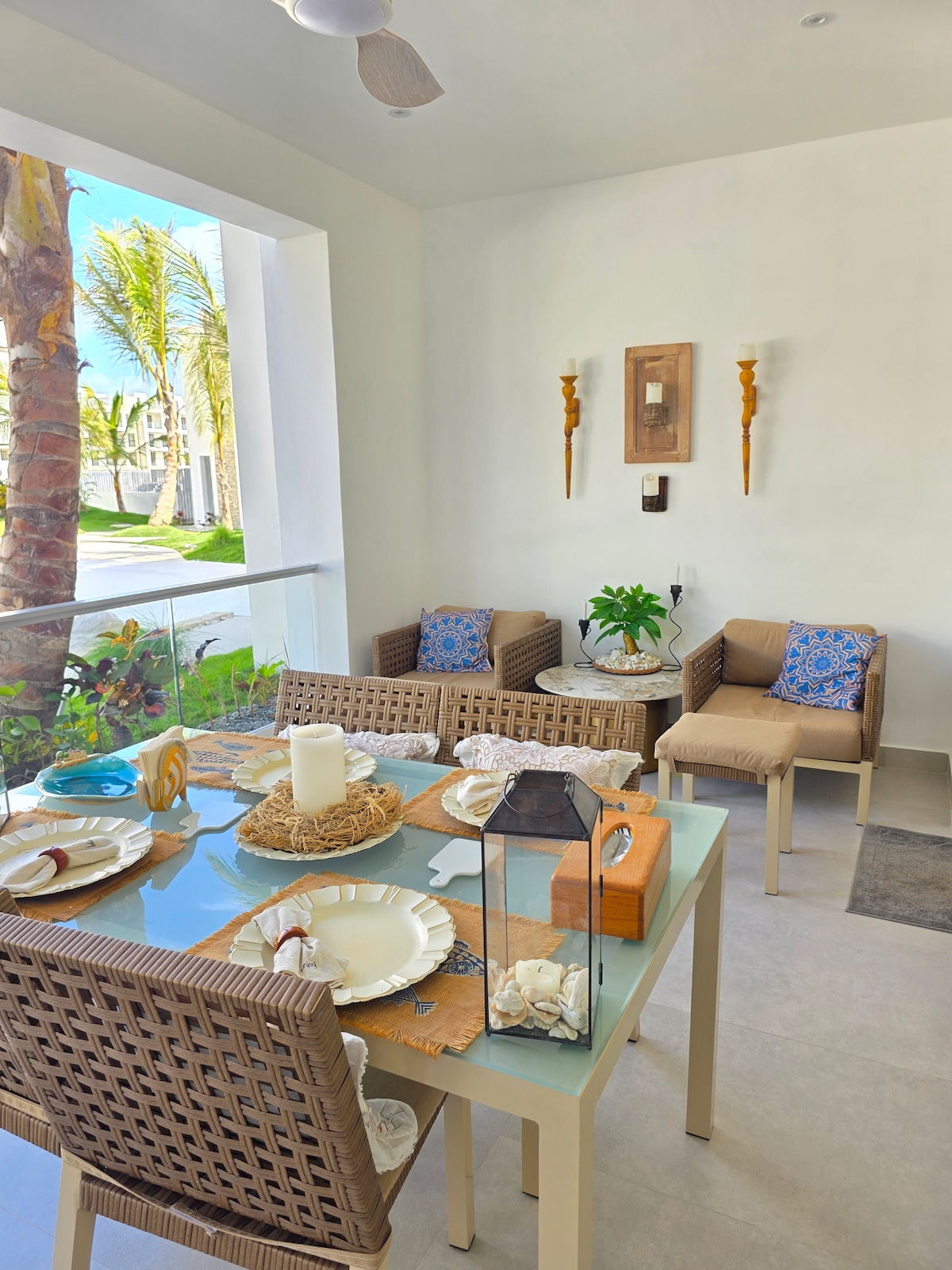 A solo 1 minuto caminando de la playa privada (visible desde la puerta del apartamento), ubicado en área más exclusiva de Bayahibe, Dominicus. Dentro del exclusivo resort Cadaqués: 3 piscinas, muelle privado, parque acuático, restaurante, bar-café, jardines tropicales, Cama king cómoda y sábanas de 300 hilos, A/C de 24,000 BTU, silla columpio (hasta 350 lb), cocina equipada, WiFi rápido y Smart TV, libros, juegos de mesa. Todo listo para que vivas una estadía inolvidable y cómoda en el paraíso!