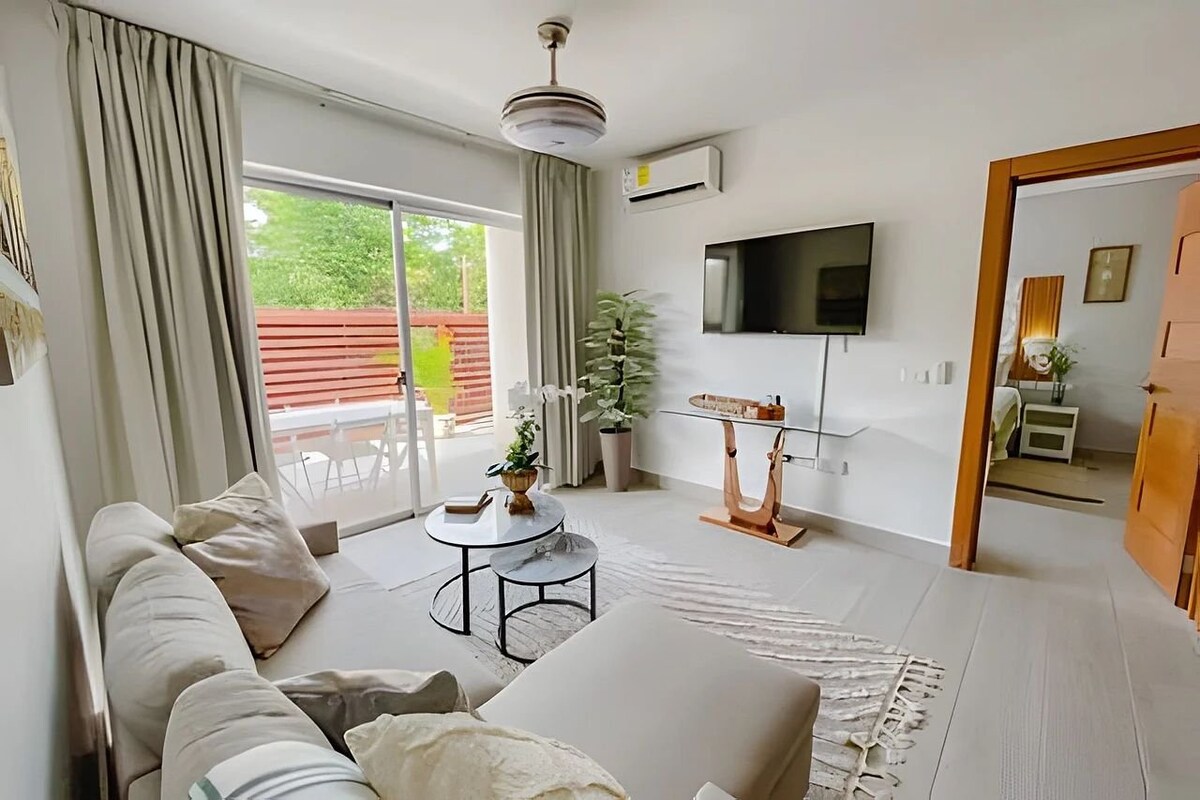 A classic apartment in the exclusive, gated residential area near Altos de Chavon. Perfect for a small family, group of friends, or someone looking to work from paradise. Our fully furnished apartment features: • King Size Bed • Two Double Beds • Walk-In Closet • Spacious Balcony & Garden View • Fiber-Optic Wifi - 40 MBPS • Pool Access - Infinity Pool, Jacuzzi, & Gazebo • Gym Access - Next Door • Full Kitchen • Washer & Dryer In Unit • Parking For 1 Car • Central AC • Pack ’N Play