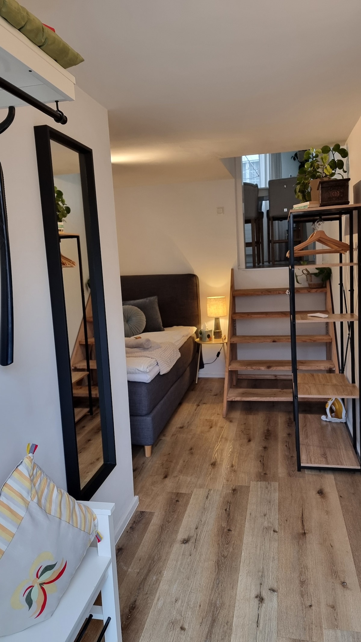 Das kleine Loft befindet sich im Erdgeschoss eines herrschaftlichen Hauses. Es ist modern und komfortabel eingerichtet: edles Bad in Schwarz und Messing, weisse Kalkputzwände, geheizter Design-Betonboden, viele Fenster, direkter Zugang zum Garten. Der lichtdurchflutete Raum, die Ruhe und der Garten laden zum Entspannen ein. Die Aussichten auf Hügel und Alpen machen Lust auf Wandern & Biken. Bahnhof und Dorfplatz mit Restaurants und einem Einkaufsladen sind nur wenige Schritte (4 Min.) entfernt.
