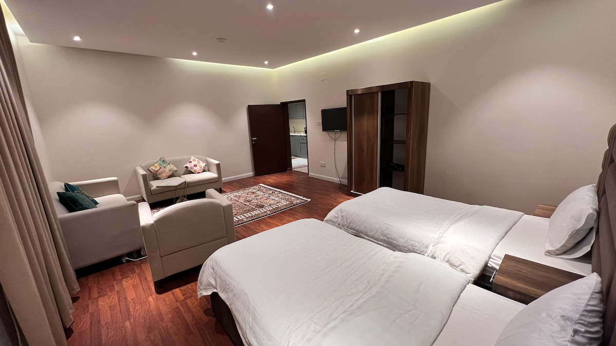 enjoy our clean serviced apartment in a greaat location in AlUla. We offer free wifi, TV, housekeeping, and delivery services.