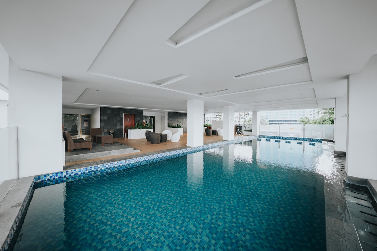 Have fun with the whole family at our stylish place. It’s a heated natural water from the hill (not a hot spring). Open from the living room, your children will love playing in this hot tub 💙 1. TIDAK available untuk pasangan yang BELUM menikah. 2. Setelah jam 10 malam kurangi volume suara dikarenakan area pemukiman. 3. Jam operasional Air Panas di kolam dari jam 6 pagi - 10 malam. 4. NO ALCOHOL, DRUGS, PORN & PARTY. 5. Security patroli 24 jam.