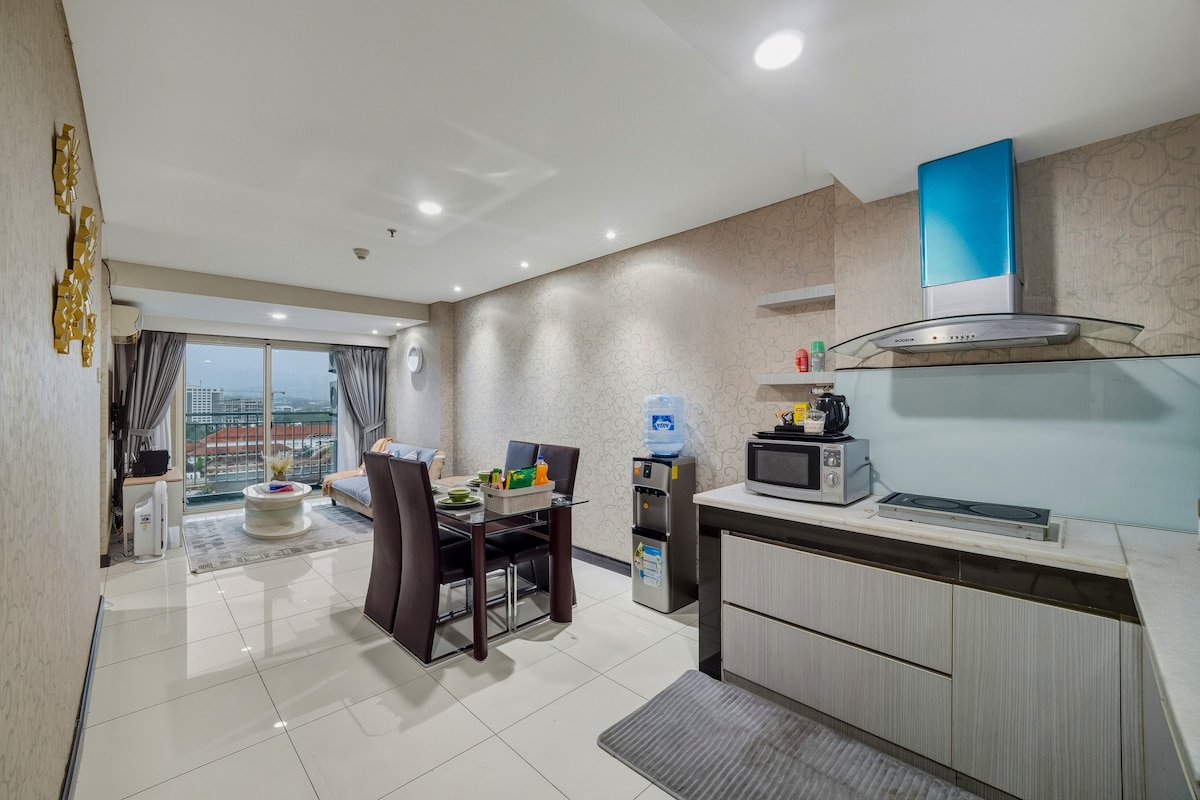 Immerse yourself in the vibrant heart of Bandung at this stylish studio on 10th floor of Parahyangan Residences. Enjoy modern amenities like a fully-equipped kitchen, high-speed Wi-Fi, and a 50" smart TV with Netflix. Indulge in resort facilities, contactless check-in, and nearby conveniences for a perfect staycation, holiday, or work-from-home experience. Now featuring a Reverse Osmosis drinking water, food waste disposal and new washing machine.