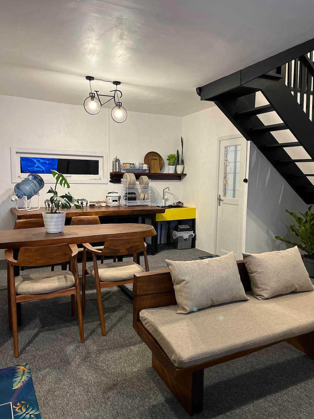 This 2-storey house with a cozy open kitchen overlooks lush rice fields and sits by a small river under big trees – perfect for relaxing in tropical nature. Although in the countryside, it´s only 20 min away from Jogja´s city center. We are a German-Indonesian family living nearby who has loved this area for years. The chill breeze in the fields and the soothing sounds of nature invite you to unwind and forget about everyday life. A healthy, homemade breakfast is included in the room price.