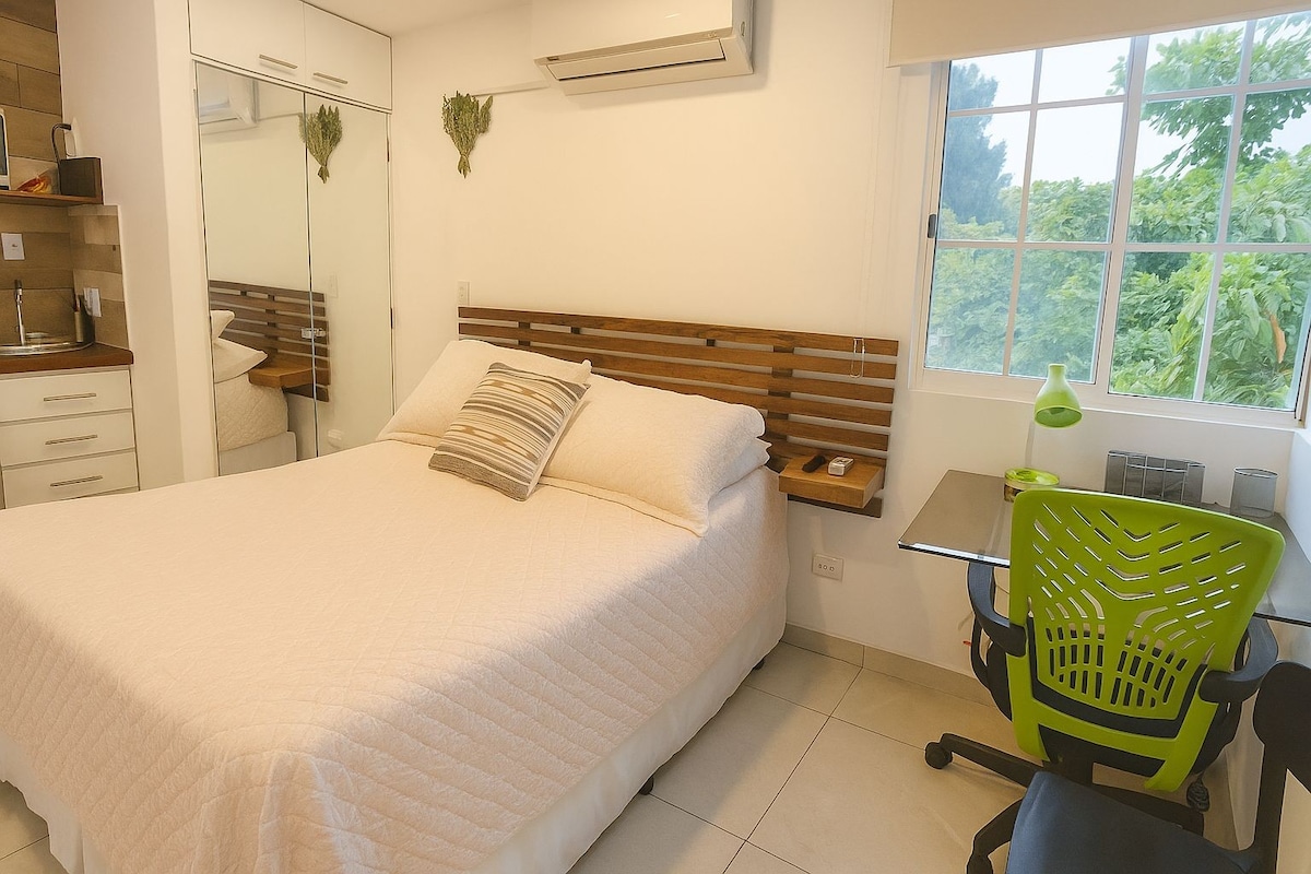Welcome to our modern & cozy apartment! 🌿 This stylish one-bedroom property features a king-size bed, A/C, and a breathtaking volcano view from the bedroom. Relax in the elegant living area with a city-view balcony, or enjoy the thoughtfully designed space with beautiful decor. Located in San Salvador’s best area, perfect for comfort & convenience. Our condo is located in San Salvador’s best area and is perfect for couples, solo travelers or anyone who wants to enjoy a confortable stay.