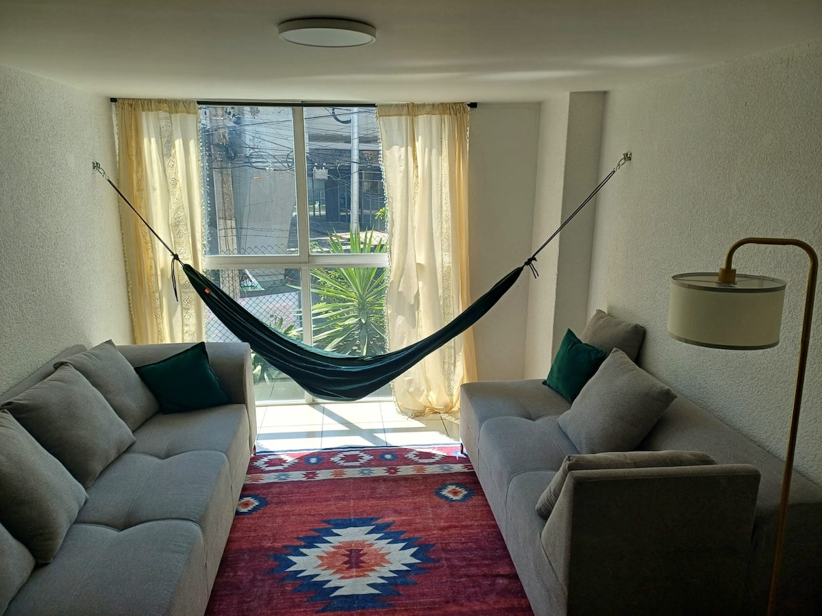 Bienvenido a 'Santa' Y no hablo de la primera película sonora hecha en México, sino de este departamento enclavado en el Pedregal que te hará sentir como en casa!/Welcome to 'Santa' and I'm not talking about the first sound movie in Mexico, but this apartment embedded in el 'Pedregal' that will make you feel like home!