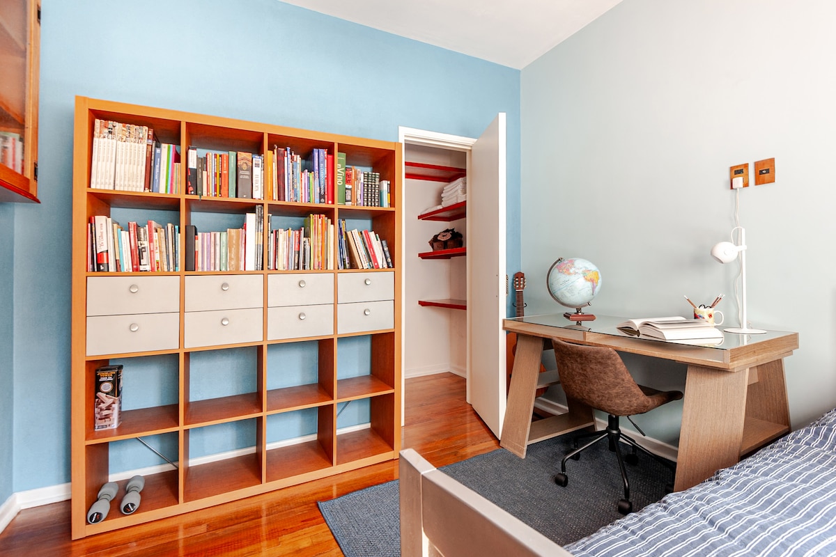 This modern apartment is located in downtown San Ángel, a colonial neighborhood established shortly after the Spanish conquest. It is located on the second floor, it has a room with a Queen size bed, Smart TV and space to store clothes. Tv room with Smart Tv, desk and double size sofa bed. Fully equipped kitchen and breakfast area. 1 full bathroom. We clean the apartment, change towels and sheets once every 7 days.