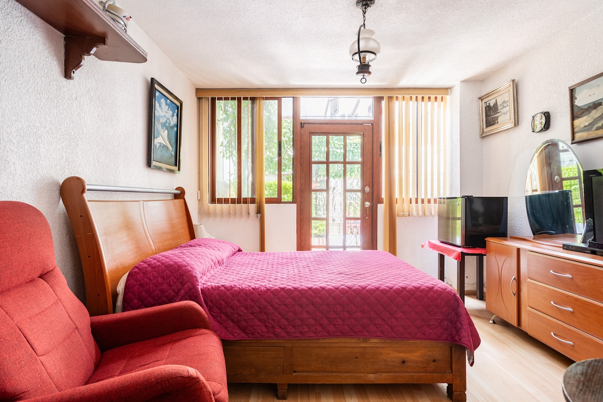 You will love my space because it is an independent Mexican style room with private bathroom and small space for cooking, table to work or eat. Fully remodeled, high quality mattress and wifi. Space safe, nice, bright and comfortable for one person. The room has its own entrance. Guest is given keys to the room and to the house entrance. Places of interest: Frida Kahlo Museum, Coyoacán, plus a direct walking through subway station direct to downtown. Perfect location for walking in City.
