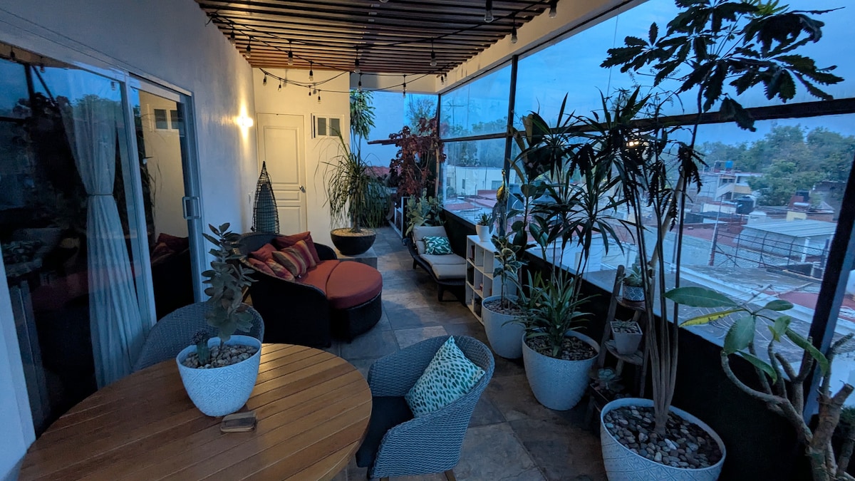 The apartment will be fully sanitized with Sodium Hypochlorite at 1% and Ozone professional generator for 2 hours and fully ventilated prior to a check-in. Entire Roof Apt. with private outdoor area (we may access the terrace for maintenance but it is not shared with other guests or tenants). Located in a very well lit area, 3 blocks away from Insurgentes Av., accesible public transit options available such as subway, Metrobus stations. Awesome variety of restaurants, bars and coffee shops.