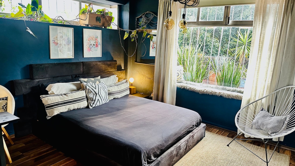 Discover our cozy Airbnb in the Roma Sur neighborhood of Mexico City. With traditional and warm decoration, this small but tranquil space offers you comfort and authenticity. Additionally, it features a rooftop for sunbathing, equipped with loungers for your total relaxation. Don't miss out on the local market that sets up on Saturdays, where you can enjoy a variety of fresh and authentic products. Located close to everything, you can easily explore the vibrant culture and city life.