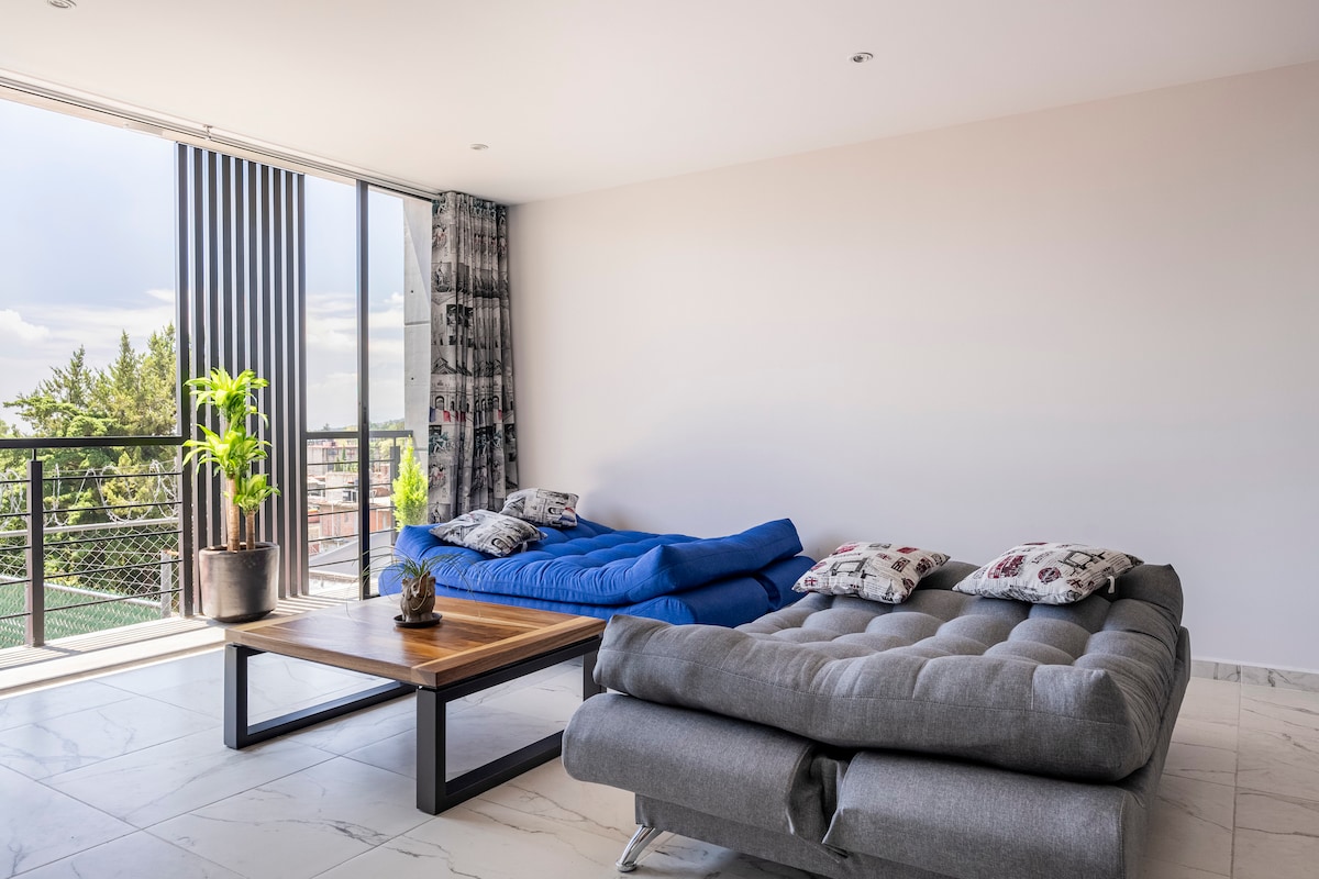 Ideal for getaways, business trips, or long stays. Enjoy a modern, spacious, and fully equipped apartment with city views, high-speed WiFi (282 Mbps), and comfortable spaces to relax or work. Located in a quiet and safe area, just 10 minutes from Six Flags and close to Hospital Ángeles del Pedregal and Pemex. Includes private parking inside the building, elevator access, and 24/7 security. Fully equipped kitchen and everything you need to feel at home.