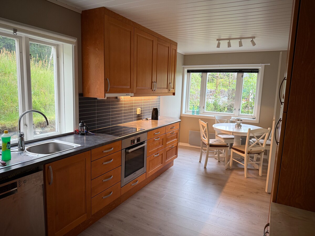Storslått utsikt, ingen WiFi. Litt over en times kjøring fra Bergen. Enden av blindvei. Det er mange opparbeidete naturstier i området og et rikt dyreliv i havet. Boligen kan brukes hele året. 6-8 soveplasser fordelt på 3 rom. Ta med egne håndklær og eget sengetøy (Kan evt leie privat). Badestamp tilgjengelig - vedfyrt. Hytten må vaskes etter bruk, evt koster utvask kr. 500,- Butikk, apotek, etc i nærheten Sykler og noe fiskeutstyr er tilgjengelig. Kjøleskap m/liten fryseboks. Min 2 netter
