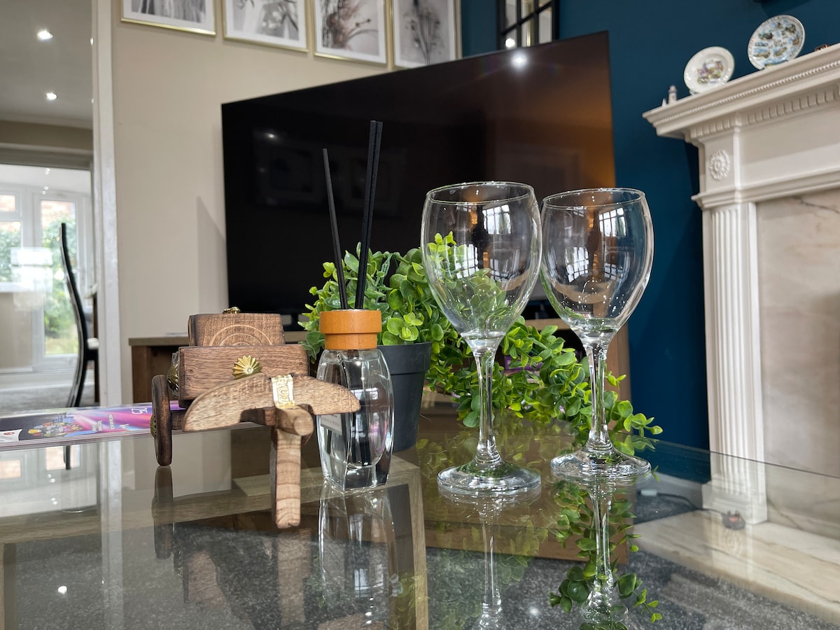 Have fun with the whole family. Bright colourful decor, dedicated work space, large kitchen diner living area with bifold doors out to a large garden with play equipment suitable for all ages. 1 King, 2 bunk beds and 1 single Memory foam mattresses on all of the beds. The single beds have extra large single duvets provided so a comfortable night can be had by adults as well as children! 1 family bathroom and a downstairs toilet. Built in BBQ and portable pizza oven available to use.