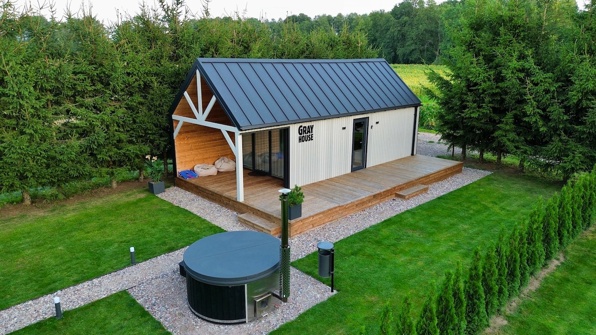 宁静的森林度假屋,配备雪松桑拿房和浸泡浴缸