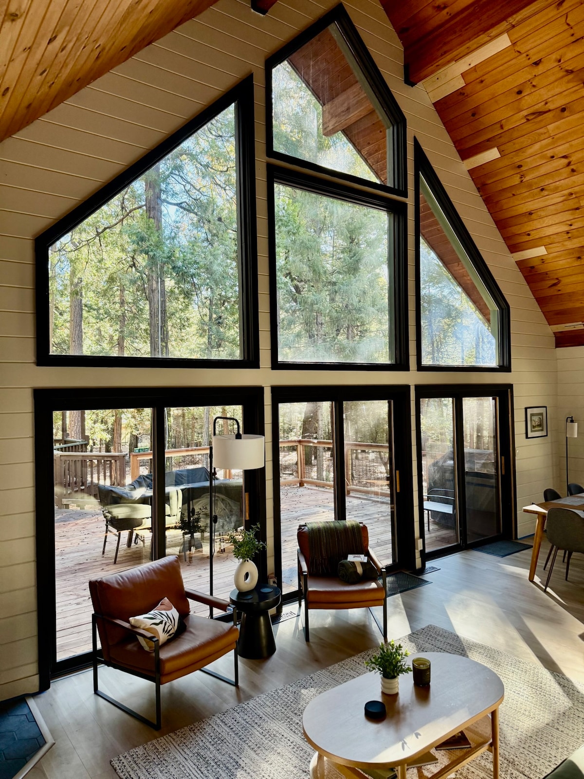 It is an A-frame cabin on stilts amongst the towering pines of the High Sierras of Northern California. At 5000 feet of elevation, it provides a perfect setting for an ultimate mountain getaway. The cabin has a rustic vibe, and is furnished with thoughtful details. It is remote, yet minutes from groceries, restaurants, the river, and one of the most treasured trees on the planet, the Sequoias.