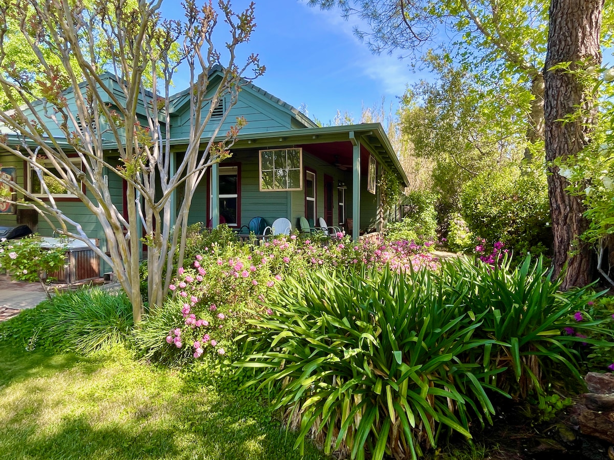 Our historic house is in downtown Plymouth- within 10 minutes to over 50 wineries. Walk to wine tasting and 5-star dining. Our private and tranquil home and gardens await. Relax by our outdoor fireplace, enjoy the outdoor kitchen or just lay low. We are an easy drive to the Bay Area, Lake Tahoe and Yosemite. We are child and business friendly, with high speed internet, scavenger hunts for children and adults, fairy garden tea parties and more. Six guest maximum. No exceptions.