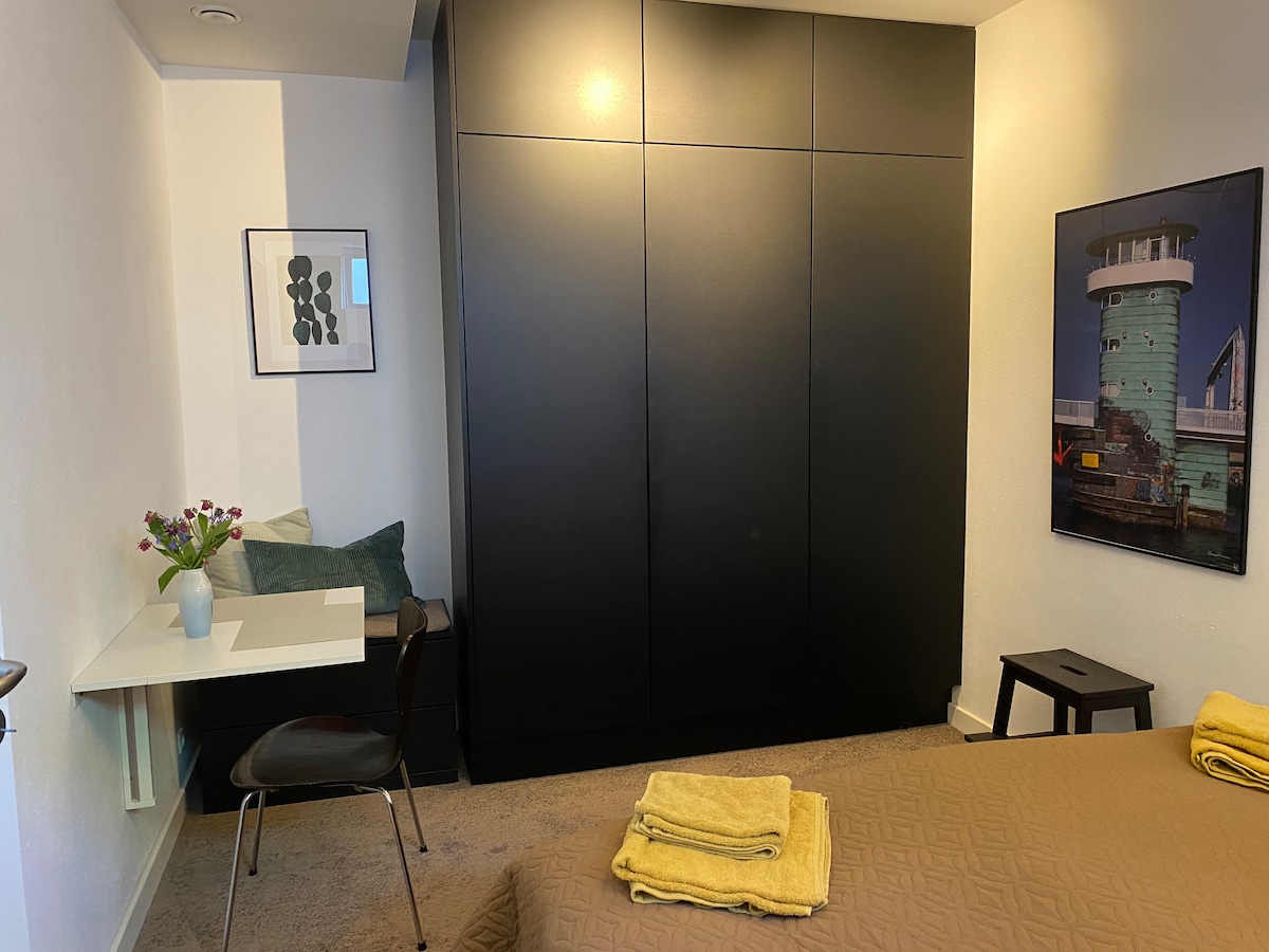 This bright and beautiful one bedroom apartment is bathed in daylight from floor-to-ceiling windows. We love that the metro can take you to the airport or right into the city in just 6 minutes. The location is great if you also plan on visiting Malmö and Southern Sweden. This new neighborhood is immensely popular and for good reasons. Go for a morning swim at the beach or go for a run with the locals along the boardwalk before exploring the city. This listing is a licensed short term rental.