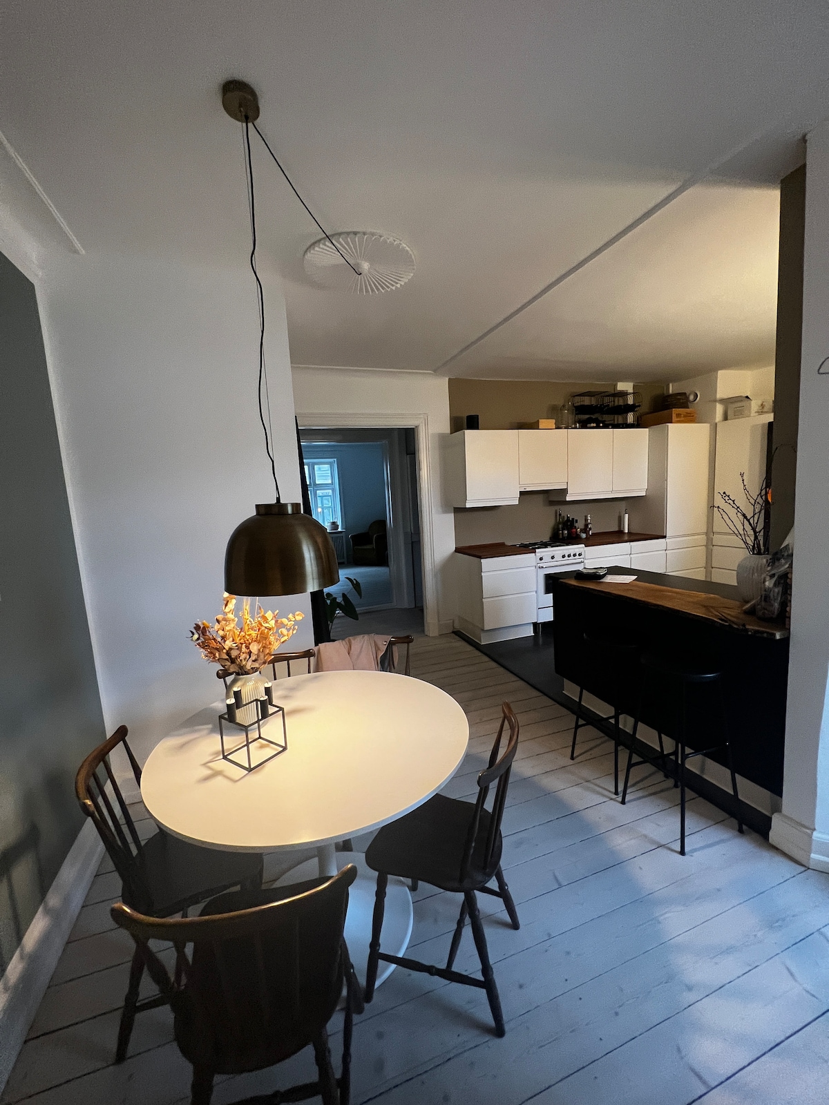 Unique and magnificent private apartment in an unbeatable location at the heart of Inner Copenhagens middle age area. Your own “town house” with a private entrance from a quit sidestreet. A high-end luxury spread over 140 sqm, you stay in a fusion Art Gallery luxury apartment Design furniture, hand built kitchen, wooden floors. high ceilings, contemp. art. Historic estate built in 1789 once a theater This place is also perfect for business meetings / work stays of longer or shorter periods