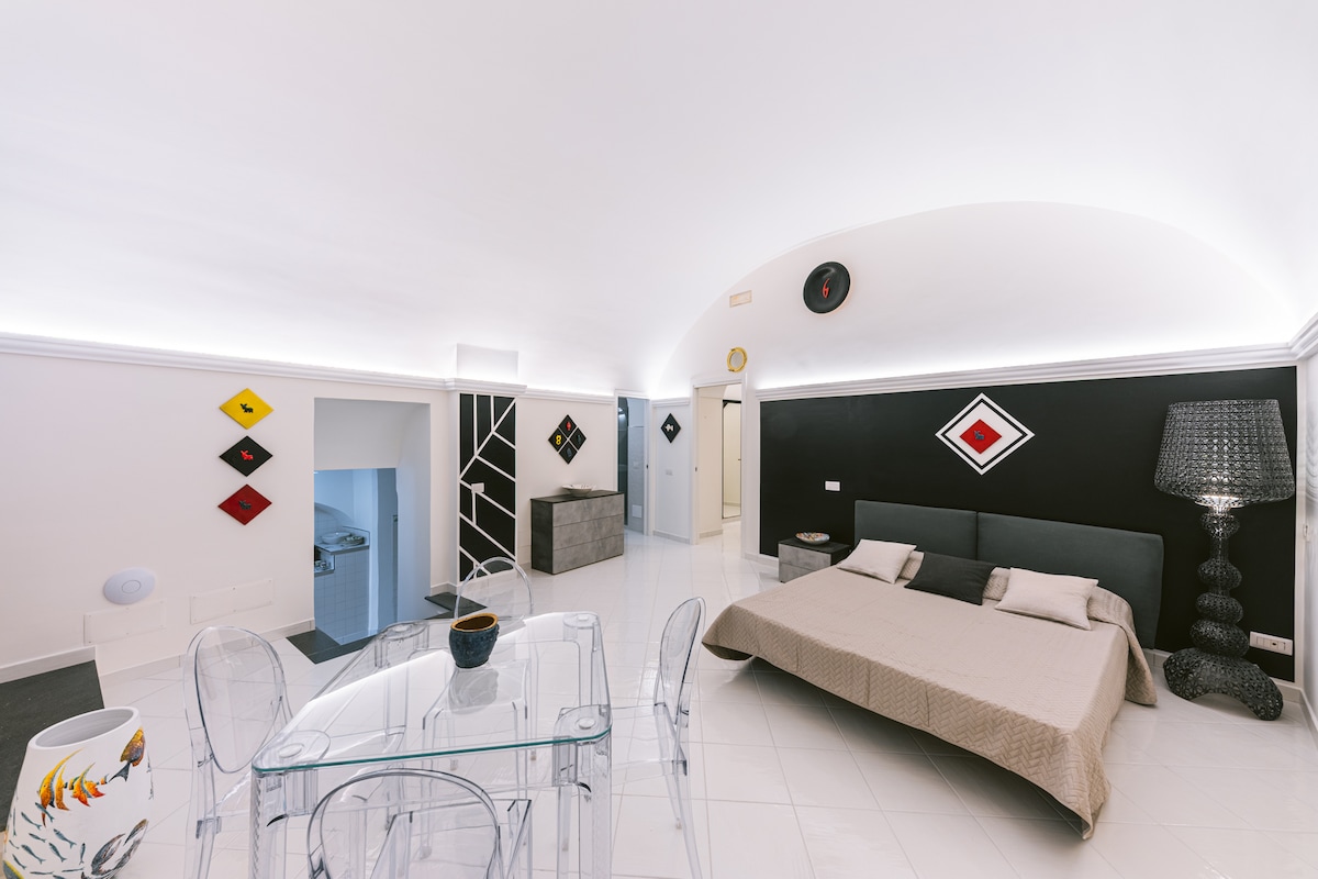 Donna Luisa Suites 9 is the designer penthouse that turns the Amalfi Coast into your private lounge: frescoes, a sky-view terrace for unforgettable dinners, two queen bedrooms, and ceramic bathrooms in Vietrese style. Bright kitchen with outdoor access, regal living room, dedicated concierge, free luggage handling, and parking included. Nestled between Amalfi, Ravello, and Atrani, it opens the doors to Valle delle Ferriere, Torre dello Ziro, and Sentiero degli Dei.
