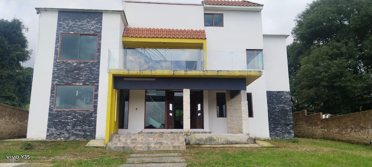 Cuenta con 4 habitaciones, una estancia con chimenea, sala, comedor tmb con chimenea. Cocina totalmente equipada, cuenta con horno de leña y horno convencional y todos los electrodomésticos básicos, la terraza cuenta con comedor, sala y asadores y chimenea. Tiene columpios, tombling, casa de muñecas y arenero. Un Jacuzzi con caldera, área para descansar y un pequeño comedor para almorzar. Area de hacer fogatas y una Capilla. Cuenta con cuarto de servicio para 4 personas con su baño completo.