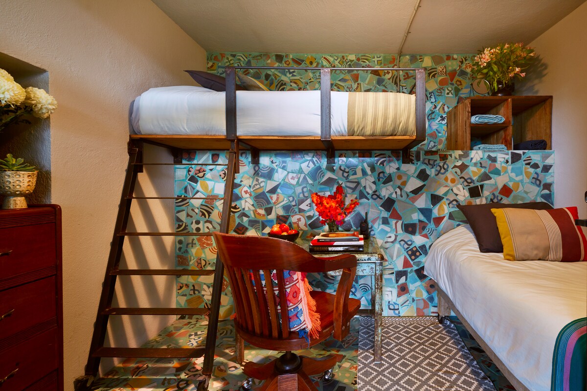 El Vagón ofrece sala de estar, cocina equipada, habitación principal con clóset, escritorio y patio privado, y una secundaria con clóset, escritorio y litera. Baño completo y compartido. La terraza elevada tiene banca, tumbona y hamacas, con vistas únicas al bosque. Es perfecto para reconectarte y disfrutar de su privacidad. Acceso a La Terraza Acapulco (compartida con otros huéspedes), con laguna viva, palapa con cocina, comedor, sala y solárium con jacuzzi, en una experiencia 100% sostenible.