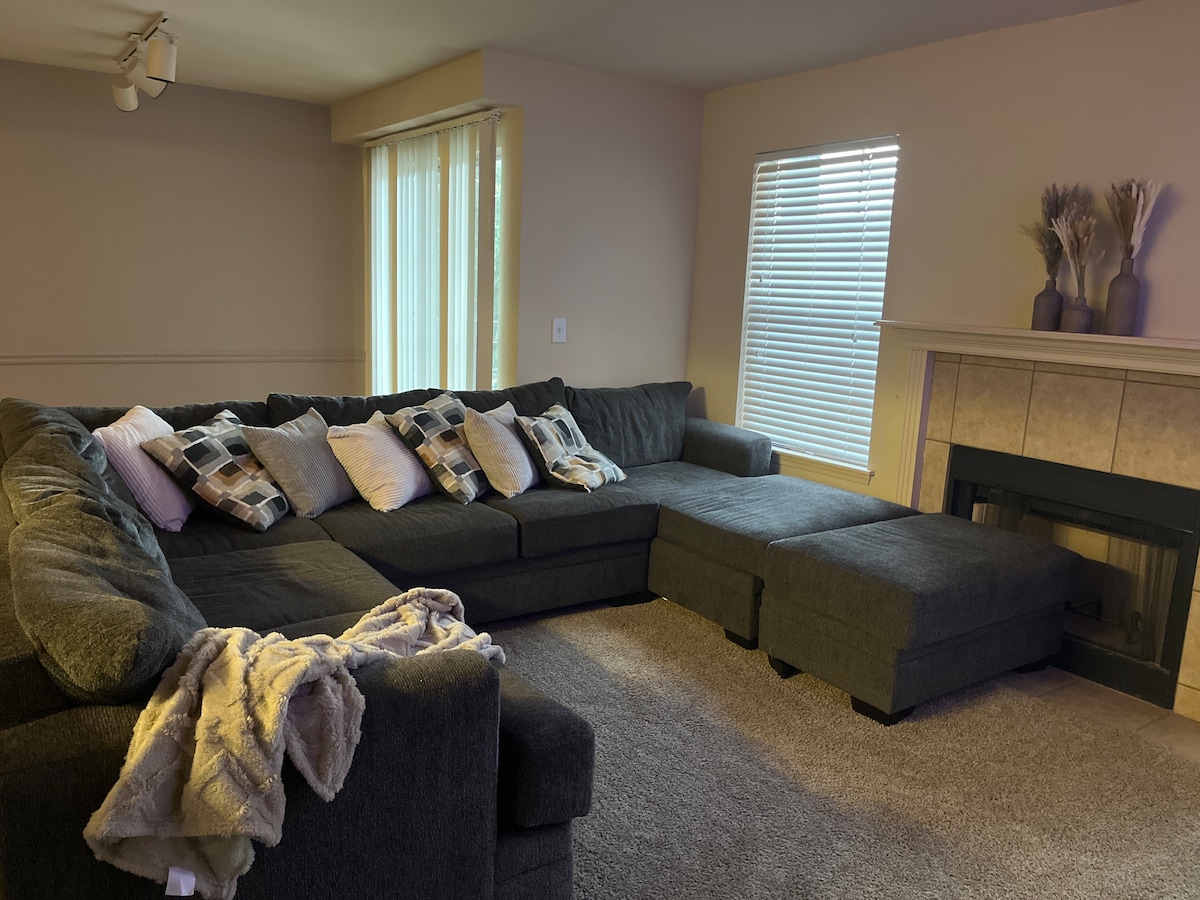 带加大双人床、壁炉、洗衣机和烘干机的舒适3卧室房源