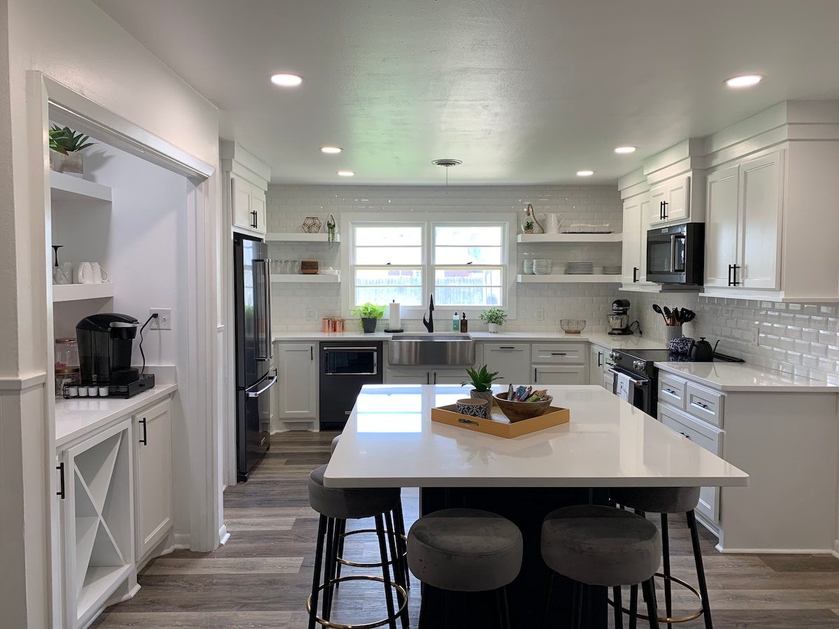 The Elegant Oasis is filled with luxury and the perfect place to stay during your trip to Amarillo! *Easy check-out, super responsive hosting team!!* This SPACIOUS modern home was designed with your comfort and needs in mind. Added amenities give you a high-end experience you’ll love in a 5 star property. Situated in Amarillo’s charming, safe, and historic Bivins neighborhood. Close to I-40, premier shopping, downtown, and more. Minutes to the medical district. We know you’ll love staying here!