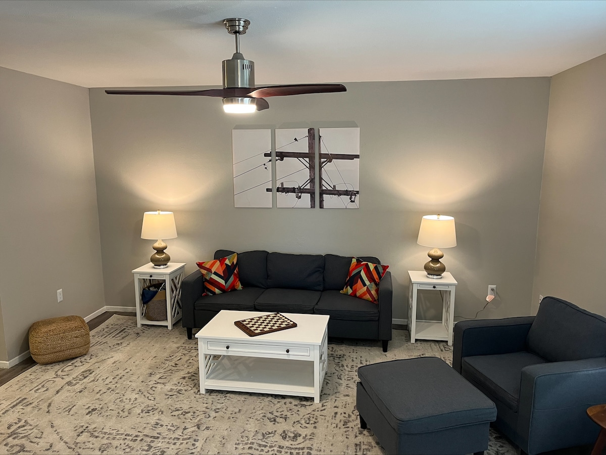 Kick back and relax in this calm, stylish efficiency space w/ private driveway parking. Newly remodeled, modern features with some original 1950s character. Small kitchenette with sink, refrigerator, microwave, small convection oven and newest smart keurig coffee machine. Large outdoor deck with plenty of seating area, private off street driveway parking for 2 cars, side street parking for large vehicle/trucks. Beautiful quiet neighborhood centrally located and very easy access to I-40 or I-27