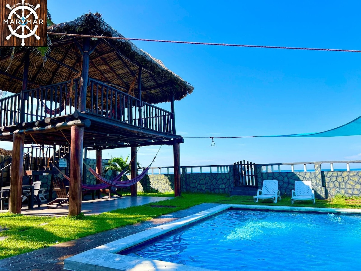 Front beach, amplio alojamiento es único , en la mejor zona de la costa del sol , con diferentes espacios para que disfrutes y si lo prefieres puedes contar con servicio de cocina de manera adicional, a 30 minutos del aeropuerto, somos petfriendly, amplia piscina , ranchos hamaqueros , jardines , 4 habitaciones, 6 baños , generalmente se alquila para 15 personas , pero tiene más habitaciones para albergar más , no querrás salir de la propiedad , pero hay más actividades