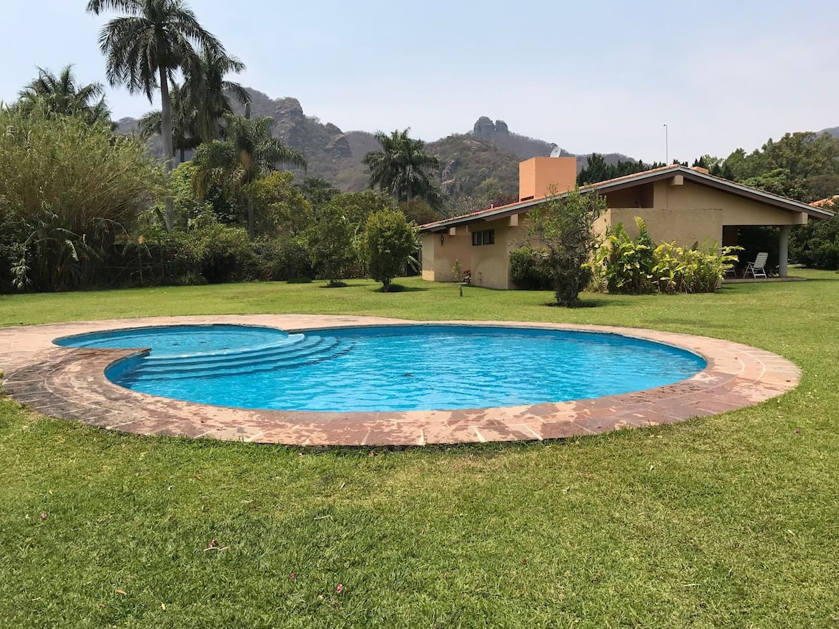Spacious house with bright spaces, a beautiful garden with private pool, and a view of the Tepozteco mountain. If you require space for more than 6 people, house 2 on the property is occupied (max 10 guests). The houses are not rented separately. Only 10 minutes by car or 15-20 minutes walking to the center of this beautiful Magical Town. The house is in a residential area, and by agreement with the authorities and neighbors, the music MUST be turned off at 10 pm. WE DO NOT ACCEPT PETS