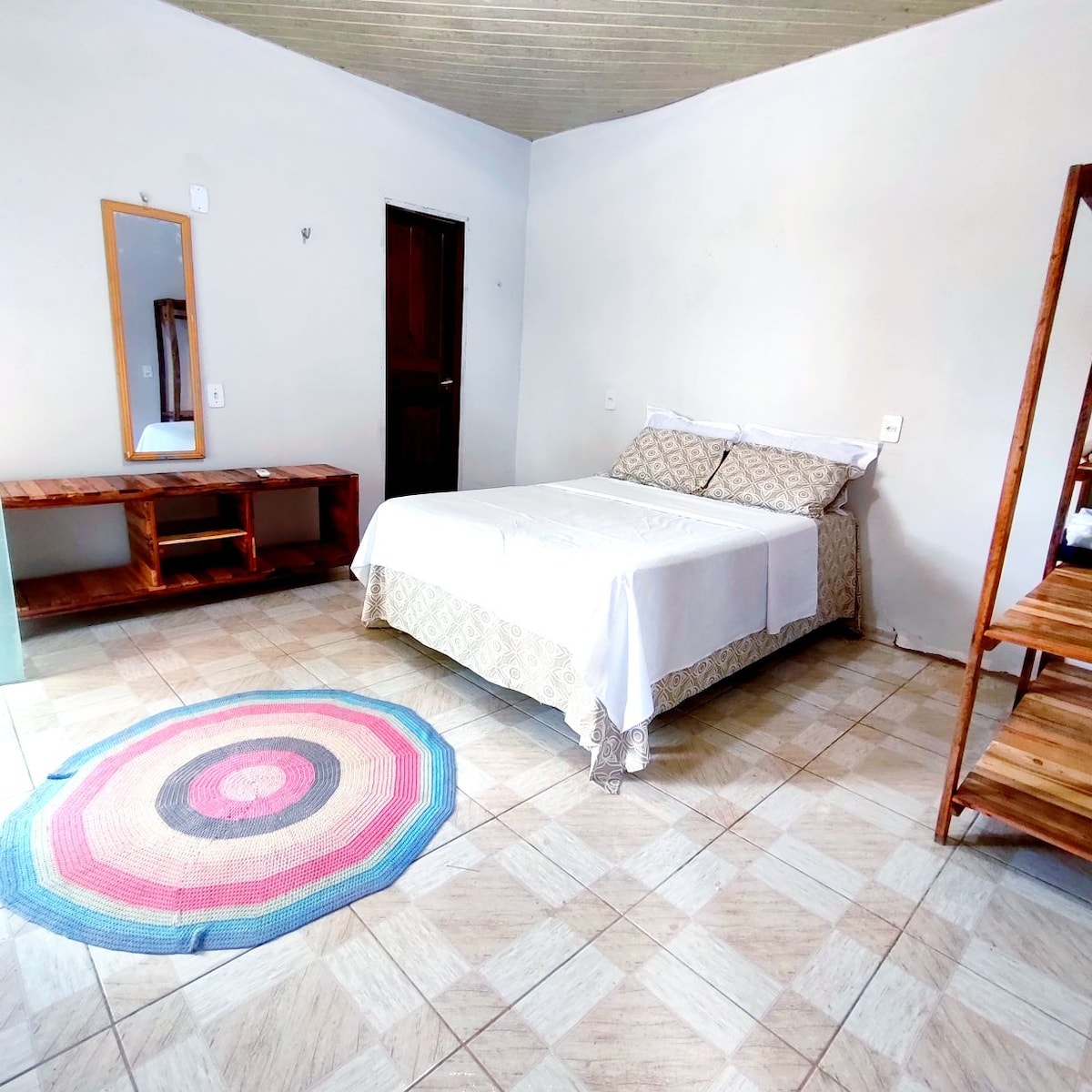 Com uma vizinhança bastante calma e segura, a casa está localizada a poucos minutos de restaurantes, lojas e academias e menos de 100m do asfalto. Os donos da casa principal são seu Renato, Dona Rosa e eu, temos uma poodle de pequeno porte chamada Loli. Será um prazer compartilhar o café da manhã, sempre dividimos com os hóspedes. Quarto com cama de casal Banheiro privativo Cozinha e sala de jantar Wi-fi gratuito, TV Chromecast, closet, toalha Estacionamento gratuito SEM CENTRAL DE AR