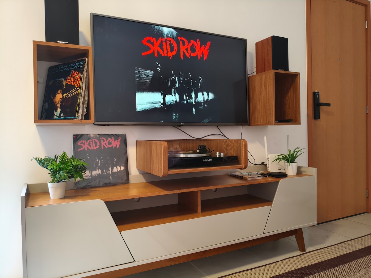 Nosso apartamento de 44m² foi pensado para seu máximo conforto, acomodando sua família ou grupo com praticidade: 2 Dormitórios: Camas confortáveis, ar-condicionado e Smart TVs. Sala de Estar: Ambiente acolhedor com Smart TV , um lindo piano e cozinha americana integrada. Cozinha Americana Completa: Geladeira, fogão cooktop , eletrodomésticos essenciais e utensílios diversos. Lavanderia: Praticidade com Máquina Lava e Seca e gás/água encanada. Acesso: andar no 3º pavimento, com acesso por escada.