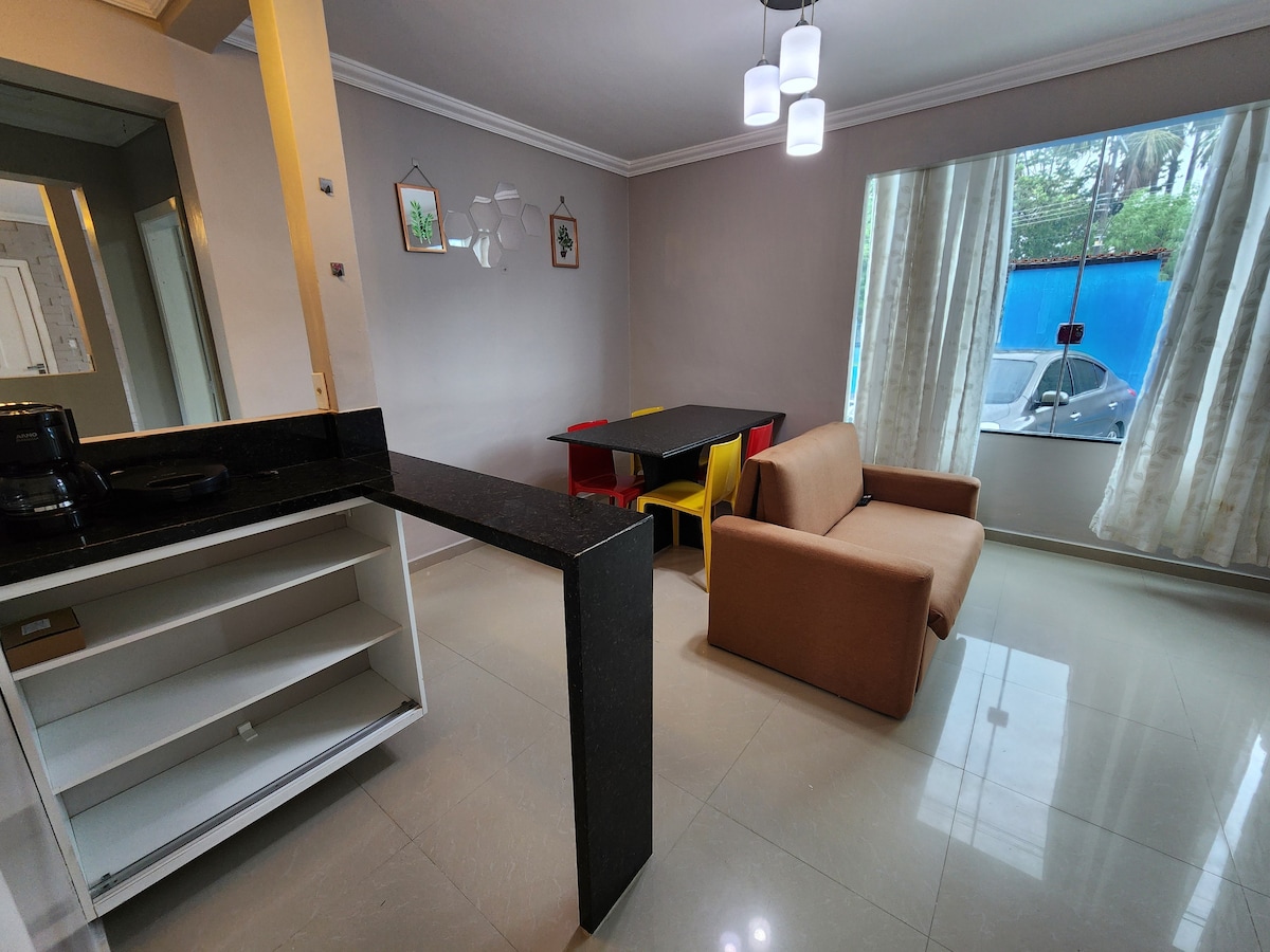 Apartamento em Condomínio seguro. O local se encontra bem localizado, próximo ao Palácio Rio Negro no Centro de Manaus. O Local é aconchegante, limpo e seguro, pois conta com guarita. O espaço está no terceiro andar (subir escadas) comporta até duas pessoas para uma cama queensize, sofá cama e espaço para rede. O apartamento é totalmente “seu” NÃO é compartilhado.