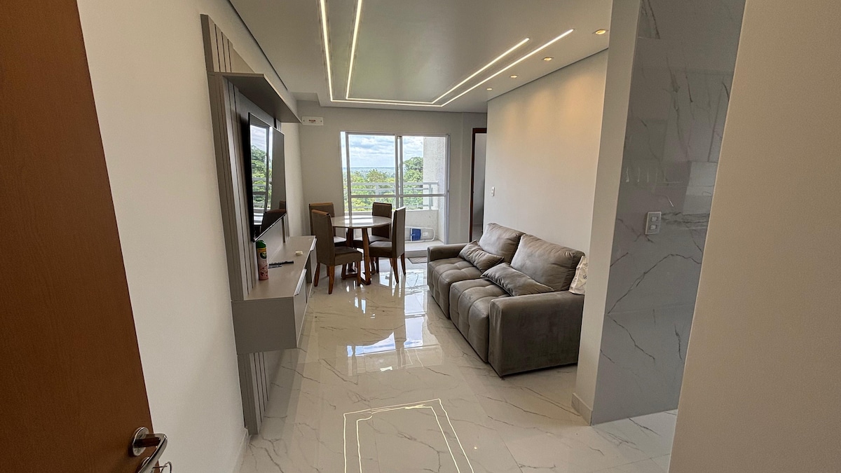Apartamento funcional em cond. fechado, 2 elevadores, 8 andar, todo mobiliado com utensílios de cama, mesa e banho, 2 quartos, 2 banheiro, sendo 1 suite, sala com 2 ambientes, varanda, salão de festa, piscina, ar condicionado, 1 vaga de garagem, academia.