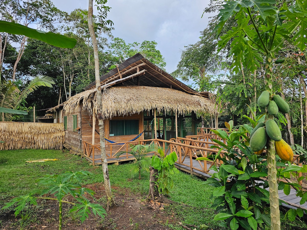 Ao pé da Serra do Carauari e a 200 metros das praias do Lago Verde, o chalé está abraçado por uma diversidade de fauna e flora. Primatas, cutias, aves e nossos dois gatos podem ser acompanhados pela varanda no segundo piso do chalé. Para maior conforto, a suíte conta com ar condicionado. A cozinha aberta oferece uma ampla mesa de piquiá e um teto verde, onde se cuida de um jardim. Um lugar de romantismo e tranquilidade, abençoado pela sombra de um ipê amarelo de 30 metros.