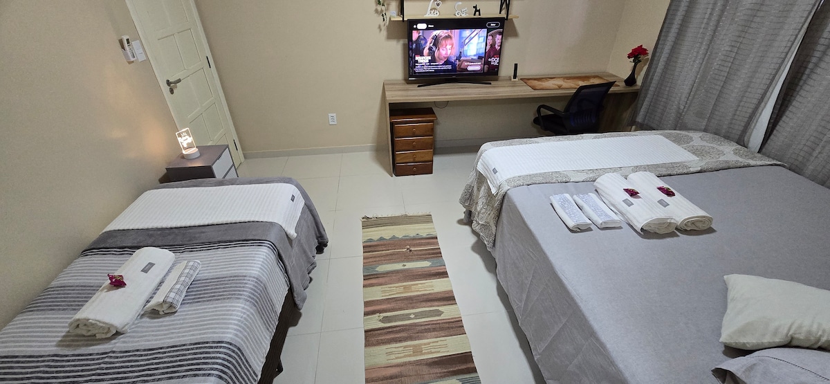 primeiro de tudo, Manaus é uma cidade que vc n precisa ficar no centro, todos passeios são estratégicos e distantes, com deslocamentos próprios para cada dia. Minha casa está no Bairro Manôa, suíte, varanda, CHUVEIRO ELÉTRICO, wifi, ar condicionado, TV, cozinha equipada, estacionamento, dicas de um nativo de Manaus. O acesso à casa de hóspedes é por escada nos fundos da minha casa, sem acesso por rampa.