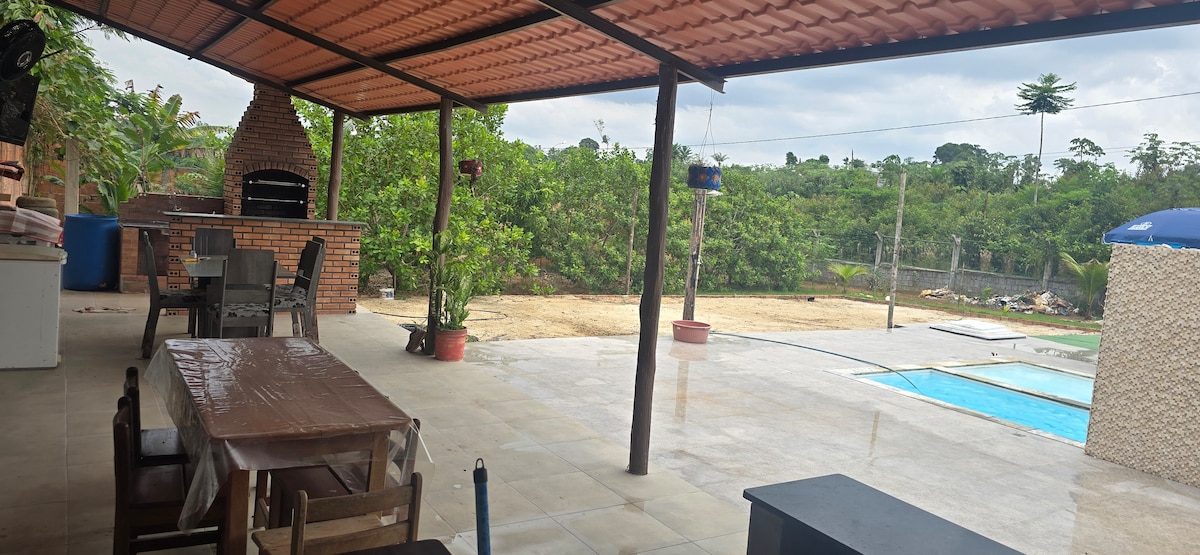 Leve toda a família a este ótimo lugar com muito espaço para se divertir. A chácara possui vários lagos com diversos tipos de peixes amazônicos Piscina, banheira com hidromassagem na suíte principal. Acomoda até 16 pessoas para dormir.