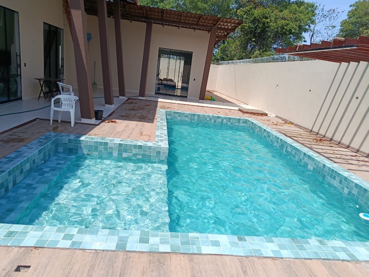 Sua família vai estar perto de tudo ao ficar neste lugar bem-localizado . São 3 camas de casal , capacidade 8pessoas . Caso prefira rede os quartos tem armado de rede . A casa ficar em ficar em um bairro nobre da cidade , ela é toda equipada . Perto temos restaurante, farmácia , posto de combustível , supermercado.