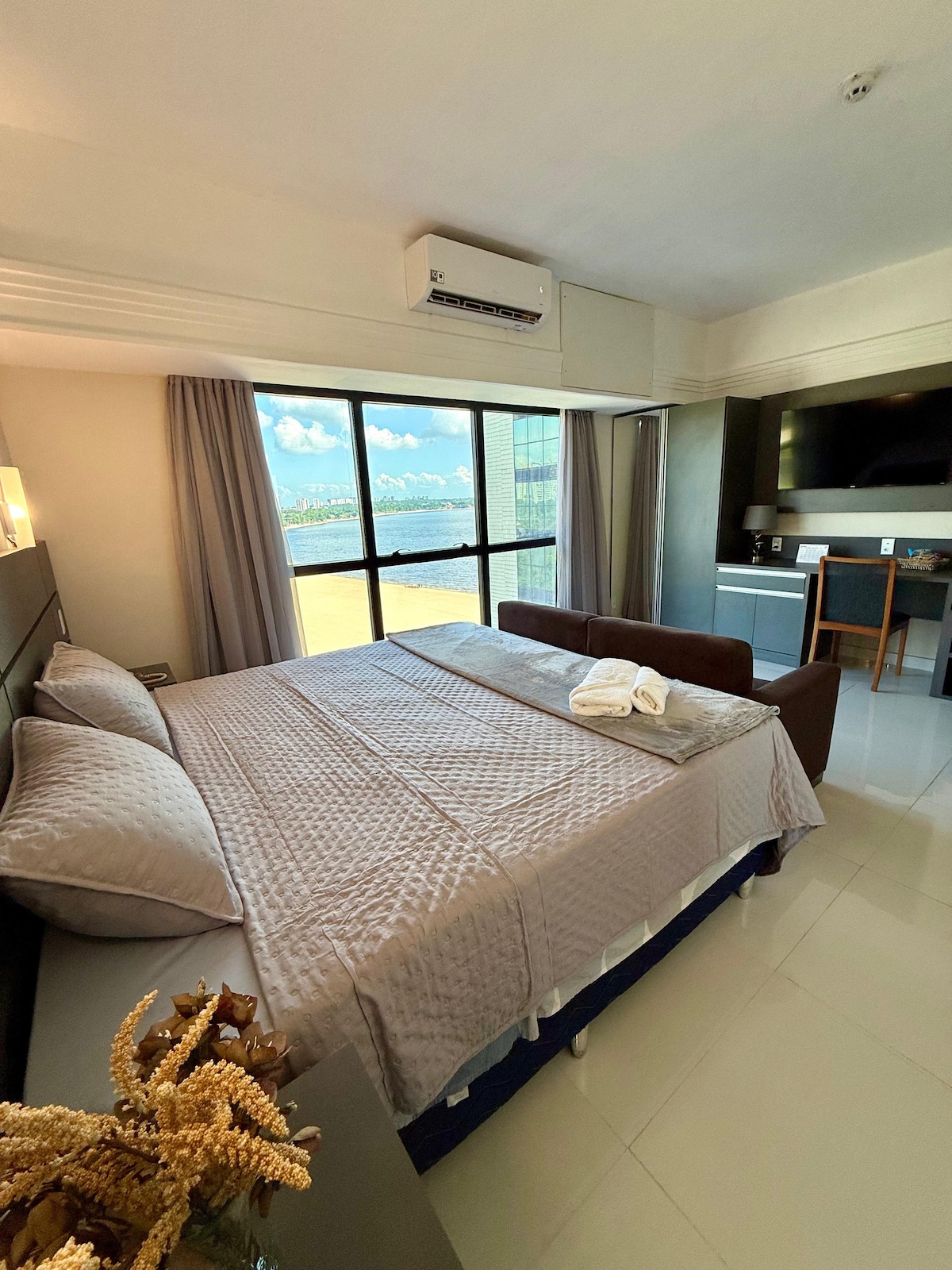 Vista para o rio e orla da ponta negra. Piscina borda infinita. Quarto com bela vista e conforto!