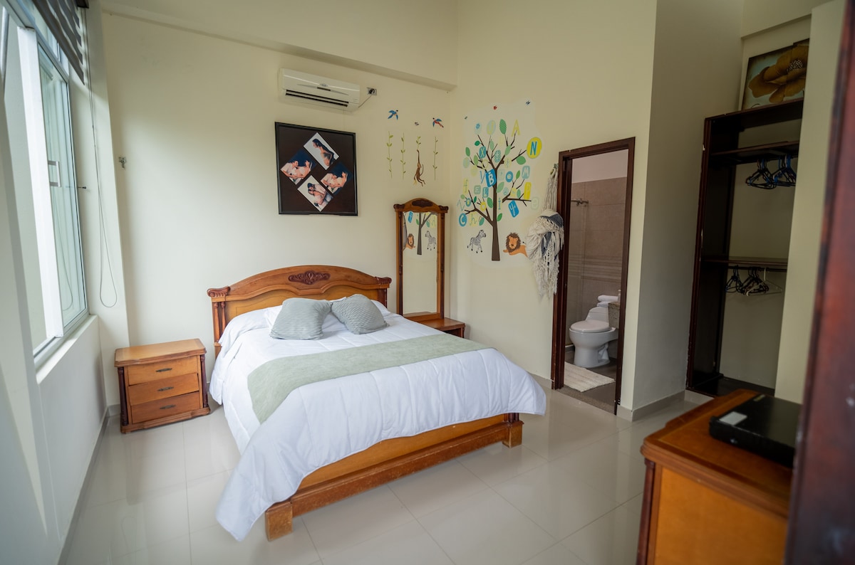 Apartamento céntrico, elegante y espacioso, ubicado en una zona segura y tranquila. Disfruta de una hermosa vista desde el balcón, sala cómoda para relajarte, cocina equipada y aire acondicionado en las dos habitaciones principales para un descanso ideal. Perfecto para viajes de ocio o trabajo, con internet estable y todo lo necesario para una estadía confortable. A pocos pasos encontrarás sitios turísticos, restaurantes de comida típica y la vibrante vida local.