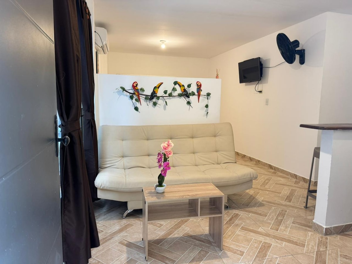 Cómodo apartaestudio ideal para descansar y explorar Leticia. Cuenta con aire acondicionado, WiFi y todo lo necesario para una estancia confortable. El espacio tiene una habitación con cama doble y en la sala un sofá cama, permitiendo alojar hasta 3 huéspedes. También dispone de cocineta con estufa de dos puestos y nevera. Ubicado en un barrio tranquilo, a solo 10 minutos caminando del centro y a 2 km del aeropuerto. Perfecto para disfrutar la Amazonía con comodidad.
